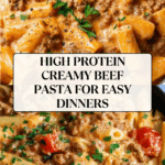 Keywords: high protein pasta, creamy beef pasta, quick weeknight dinner, ground beef pasta, healthy creamy pasta