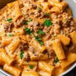 Keywords: high protein pasta, creamy beef pasta, quick weeknight dinner, ground beef pasta, healthy creamy pasta