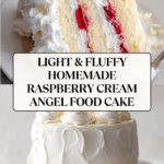 This Homemade Raspberry and Cream Angel Food Cake is a light, airy dessert layered with rich mascarpone cream and sweet raspberry preserves. Topped with fluffy Italian meringue, it makes a stunning centerpiece for any occasion.