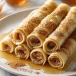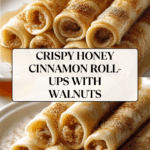 Honey Cinnamon Roll-Ups are flaky, buttery phyllo dough rolls filled with a crunchy, spiced walnut mixture and finished with a sweet honey syrup. This delightful dessert combines warm cinnamon, toasted walnuts, and a luscious honey glaze, perfect for a cozy treat or festive occasion.