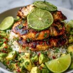 Keywords: Honey Lime Chicken, Avocado Rice, Grilled Chicken, Healthy Chicken Recipe, Gluten Free Dinner, Easy Weeknight Meal, Citrus Chicken