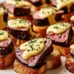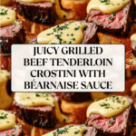 This grilled beef tenderloin crostini with béarnaise is a perfect appetizer for any occasion. Juicy, tender beef pairs beautifully with a creamy, tangy sauce on crisp, toasted baguette slices. It’s simple to prepare yet elegant enough to impress your guests.
