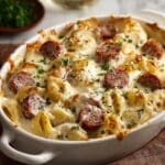 This Kielbasa and Pierogi Bake is a comforting and hearty casserole dish that combines tender potato and cheese pierogies with savory sautéed kielbasa and onions, all smothered in a creamy cheese sauce and baked to bubbly perfection. It’s an easy meal perfect for busy weeknights or lazy weekends, offering a delightful blend of creamy, smoky, and cheesy flavors.