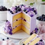 Keywords: Lavender cake, lavender buttercream, floral cake, spring cake, floral frosting, homemade cake, baked cake, dessert recipe