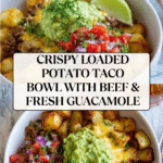 This Loaded Potato Taco Bowl combines crispy roasted potatoes with spiced ground beef, fresh guacamole, and vibrant salsa for a hearty and flavorful meal. Perfect for a cozy weeknight dinner, it’s easy to prepare and sure to satisfy your taco cravings in a unique way.