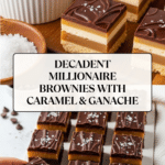Millionaire Brownies are a decadent treat combining a buttery shortbread crust, rich chocolate brownie layer, gooey caramel filling, and smooth chocolate ganache topping. Perfect for impressing guests or indulging your sweet tooth, this multi-layered dessert offers a delightful balance of textures and flavors.