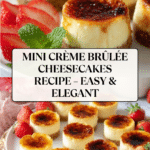 These Mini Crème Brûlée Cheesecakes combine the creamy richness of classic cheesecake with a crisp, caramelized sugar topping reminiscent of crème brûlée. Featuring a buttery graham cracker crust and velvety filling, these individual-sized desserts are perfect for elegant gatherings or a decadent treat.