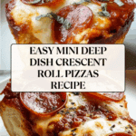 These Mini Deep Dish Crescent Roll Pizzas are an easy and delicious snack or meal option, combining flaky crescent roll dough with classic pizza toppings. Perfectly baked in a muffin tin, these bite-sized pizzas feature a golden crust, savory marinara sauce, melted mozzarella, and flavorful pepperoni, offering a fun twist on traditional pizza that can be customized with various toppings.