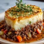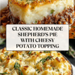 This classic Homemade Shepherd’s Pie features a savory meat filling of ground lamb or beef mixed with vegetables and herbs, topped with creamy mashed potatoes and optionally sprinkled with cheddar cheese for a golden, crispy crust. A hearty and comforting dish perfect for family dinners.