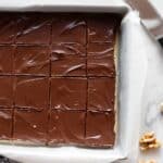 - Top Bars with Chocolate: Pour the melted chocolate over the chilled filling layer and smooth the top evenly.
