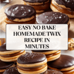 This No Bake Homemade Twix recipe recreates the beloved candy bar at home using simple ingredients and no oven. Vanilla wafers are sandwiched around soft caramel discs and coated with melted chocolate, resulting in a deliciously crunchy, chewy, and chocolaty treat perfect for anytime snacking.