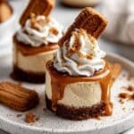 These No Bake Mini Biscoff Cheesecakes are creamy, indulgent, and bursting with the rich flavor of Biscoff cookies and cookie butter. Perfect for an easy dessert, they feature a buttery Biscoff crust, a smooth, luscious cheesecake filling, and a glossy Biscoff spread topping, all made without any baking required. Garnish with whipped cream and extra Biscoff cookies for a delightful treat that’s sure to impress.