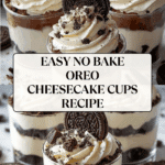 These No Bake Cheesecake Cups are a quick and easy dessert featuring a crunchy Oreo crust, a creamy cheesecake filling, and delicious Oreo toppings. Perfect for a hassle-free treat that requires no baking and can be customized with your favorite add-ins.