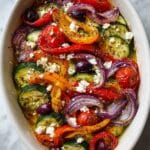 This One Pan Greek Vegetables recipe is a simple, vibrant dish bursting with Mediterranean flavors. Roasted to perfection, it combines colorful veggies and olives with fragrant oregano and a touch of garlic. It’s perfect as a healthy side or a light main course.
