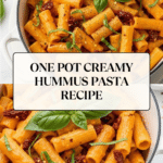 Keywords: one pot pasta, creamy pasta, hummus pasta, sun-dried tomatoes, quick pasta recipe, vegetarian pasta, Mediterranean pasta