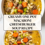 This One Pot Macaroni Cheeseburger Soup combines the comforting flavors of a classic cheeseburger with a creamy, hearty soup. It’s an easy weeknight meal that comes together quickly and satisfies with cheesy goodness and crispy bun croutons.