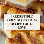 Ooey Gooey Bars are a rich, creamy dessert that combine a buttery cake crust with a sweet, velvety cream cheese filling. They’re simple to make and perfect for sharing at gatherings or enjoying as a comforting treat. Once you try them, their melt-in-your-mouth texture will have you coming back for more.