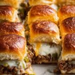 These Philly Cheesesteak Sliders with Ground Beef combine juicy, seasoned ground beef with sautéed onions and bell peppers, melted provolone cheese, and buttery slider buns. Perfect for parties, game days, or a flavorful family meal, these sliders are baked until golden and cheesy, delivering a delicious twist on the classic Philly cheesesteak in a convenient, bite-sized form.