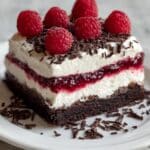 Keywords: Raspberry Chocolate Lasagna, no-bake dessert, layered dessert, Oreo crust, chocolate pudding, cream cheese raspberry layer, easy dessert