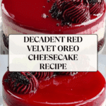 This indulgent Red Velvet Cheesecake combines the rich, moist texture of classic red velvet cake with a creamy Oreo-studded cheesecake filling. Finished with a decadent dark chocolate ganache and whipped cream frosting, this layered dessert is perfect for special occasions and chocolate lovers alike.