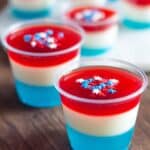 Celebrate patriotic occasions with these festive Red White & Blue American Flag Jello Shots. Layered with cherry and berry blue gelatin, vodka, and a creamy white layer made with sweetened condensed milk, these boozy treats are perfect for parties and gatherings. Easy to prepare and visually striking, these jello shots bring the stars and stripes to your celebration in a fun and delicious way.