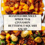 Keywords: roasted brussels sprouts, butternut squash, cinnamon, pecans, cranberries, maple syrup, roasted vegetables, vegetarian side dish, autumn recipe