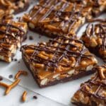 - Top with Remaining Chocolate: Use the remaining melted chocolate to drizzle all over the caramel and pretzel layer, adding a final chocolatey touch for flavor and appearance.