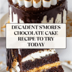Indulge in this decadent S’mores Chocolate Cake featuring moist, rich chocolate cake layers layered with toasted marshmallow frosting, creamy vanilla frosting, chocolate ganache, and a crunchy graham cracker crumb topping. Inspired by the classic campfire treat, this cake combines the nostalgic flavors of melted marshmallows, chocolate, and graham crackers in an elegant dessert perfect for celebrations.