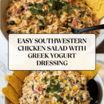 This Southwestern Chicken Salad is a vibrant and flavorful dish featuring tender shredded chicken combined with creamy Greek yogurt and a blend of southwestern spices. Enhanced with black beans, fire-roasted corn, and crisp vegetables, it’s perfect served on toast, with chips, or as a wrap filling. This fresh and protein-packed salad is both nutritious and easy to prepare, making it an ideal lunch or light dinner option.