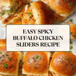 These Spicy Buffalo Chicken Sliders are a perfect party appetizer or game day snack, packed with shredded chicken tossed in tangy buffalo sauce, creamy ranch, and spices, all topped with melted cheese and a garlic butter glaze. Baked to golden perfection on soft slider buns, they deliver a flavorful and satisfying bite-sized treat.