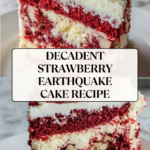This Strawberry Earthquake Cake is a luscious, moist dessert that combines the sweet, fruity flavor of fresh strawberries with creamy white chocolate chips, shredded coconut, and nuts for added texture. Swirled with a rich cream cheese frosting baked into the cake, it’s a delightful treat perfect for gatherings and celebrations.