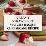 Strawberry Matcha Basque Cheesecake is a delightful fusion of earthy matcha and sweet strawberries with the rich creaminess of a classic Basque cheesecake. Its caramelized top and luscious texture make it a perfect treat for special occasions or a luxurious everyday dessert.