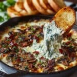 Keywords: mushroom dip, stuffed mushroom dip, creamy mushroom dip, baked dip, appetizer, party dip, cheesy dip