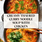 This vibrant Thai Red Curry Noodle Soup combines tender chicken, aromatic red curry paste, and creamy coconut milk with fresh vegetables and herbs. It’s a flavorful, comforting one-pot meal perfect for a cozy dinner that brings together the bold, spicy, and tangy flavors of Thailand.