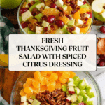 Keywords: Thanksgiving fruit salad, holiday fruit salad, pecan fruit salad, citrus dressing, apple pie spice fruit salad, fresh fruit side dish