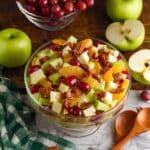 Keywords: Thanksgiving fruit salad, holiday fruit salad, pecan fruit salad, citrus dressing, apple pie spice fruit salad, fresh fruit side dish