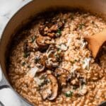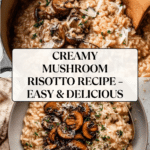 This Mushroom Risotto is a creamy, comforting dish made with a blend of porcini and cremini mushrooms, Arborio rice, and Parmesan cheese. Slow-simmered in a savory mushroom-infused broth with white wine and finished with fresh parsley, this recipe delivers rich umami flavors and a luscious texture perfect for a cozy meal.