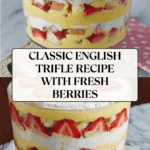 This Traditional English Trifle is a classic layered dessert featuring moist cake soaked in cream sherry, sweet raspberry preserves, fresh seasonal berries, rich vanilla custard, and light whipped cream. The combination of textures and flavors creates an elegant and refreshing dessert perfect for celebrations or anytime indulgence.