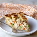 Store any leftovers in an airtight container in the refrigerator for up to 5 days. Reheat individual slices in the microwave or oven until warmed through. This pot pie can also be frozen before baking; thaw in the fridge overnight and bake as directed.
